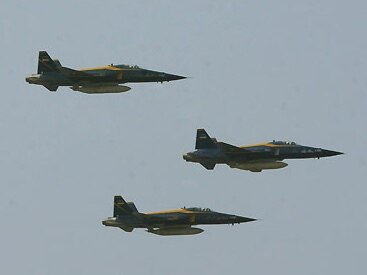دستاوردهاى بومى نيروى هوايى ايران نيز كه در نمايش هوايى تهران به پرواز درآمدند يعنى هواپيماهاى آذرخش و صاعقه تركيبى از هواپيماهاى اف ۵ و ميگ ۲۳ است كه تاكنون ۵ فروند از آنها توليد شده و به پرواز نمايشى پرداختهاند.